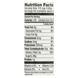 Oregon specialty fruit dark sweet cherries provides the perfect topping to your favorite vanilla ice cream with the sweet and tart taste of cherries. These cherries come pitted in a heavy syrup so you can spread them on a homemade cheesecake without a lot of hassle. The fruit in these 15 oz. Cans, with around three servings of 1/2 cup and 120 calories each, are picked ripe and selected by hand.
