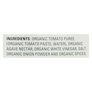 ingredients : organic tomato puree;organic tomato paste;water;organic agave nectar;organic white vinegar;salt;organic onion powder and organic spices
