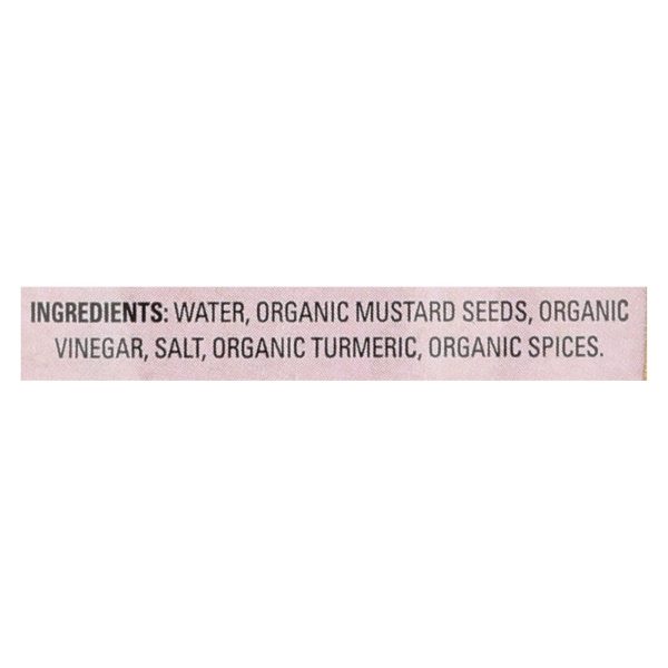 ingredients : water;organic mustard seed;organic vinegar;salt;organic turmeric;organic spice