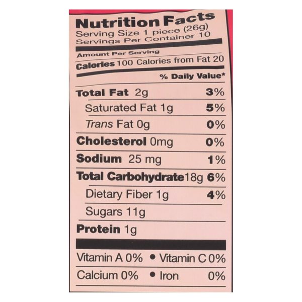 Pamela’s products extra large cookies, figgies & jammies, raspberry & fig are a natural and delicious snack option. Made with natural ingredients, these cookies are free of unnatural and unnecessary additives. This product is gluten-free and kosher. Each box of pamela’s products extra large cookies, figgies & jammies, raspberry & fig weighs 9 oz. With 10 servings per box and 100 calories per serving.