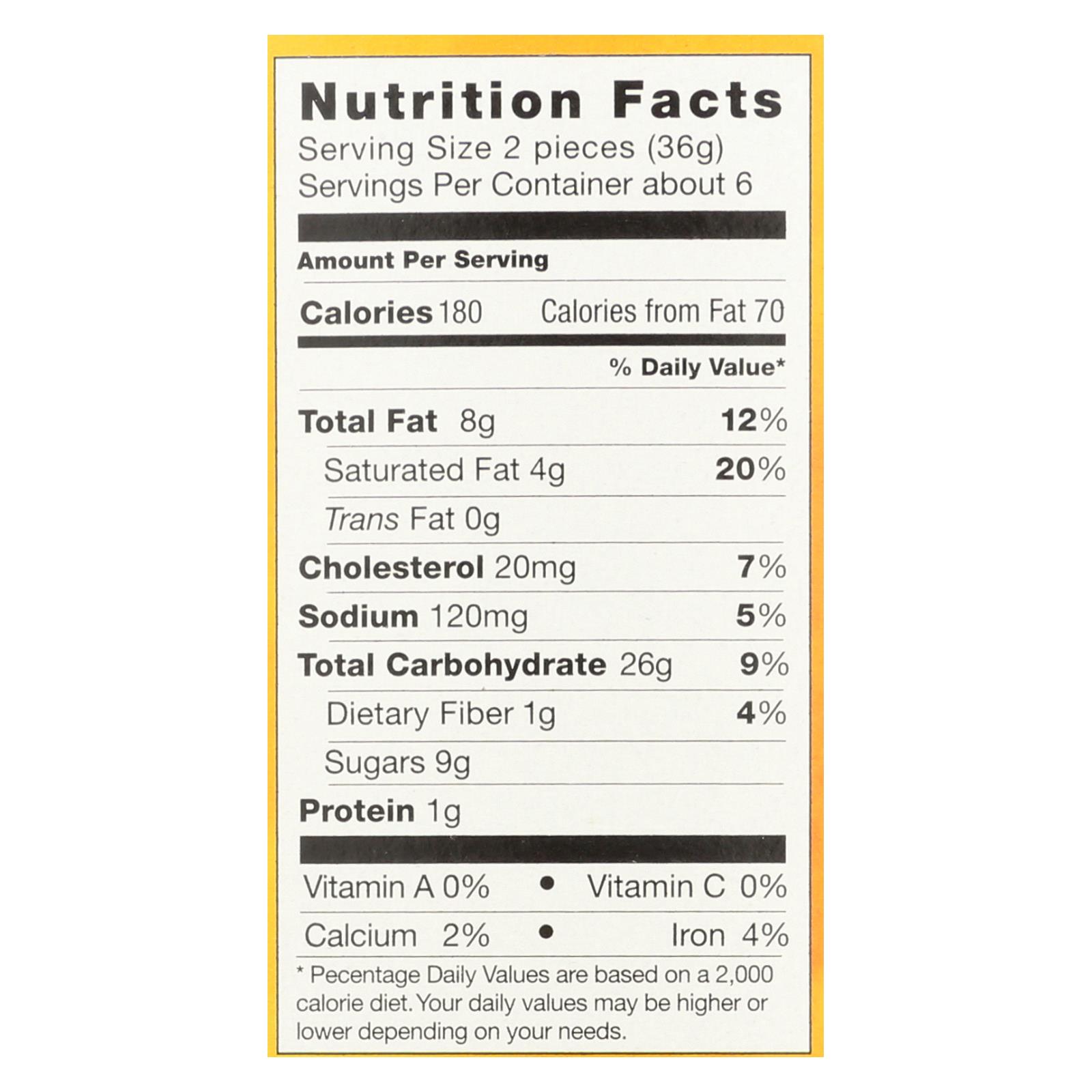 Pamela’s products graham crackers, honey are a natural and delicious snack option. Made primarily with natural ingredients, these graham crackers are largely free of unnatural and unnecessary additives. This product is gluten-free, kosher and does not contain trans fat. Each box of pamela’s products graham crackers, honey weighs 7.5 oz. With six servings per box and 180 calories per serving.