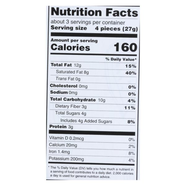 ingredients : organic chocolate liquor;organic cane sugar and organic cocoa butter