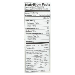 At patience fruit & co., we believe that doing it right is better than doing it fast, and the result is a range of snacks that is well worth taking your time to enjoy. That’s why we watch over our precious cranberries every step of the way. We’re the people who plant them, care for them, harvest them and prepare them. Each 4 oz. Bag of our dried organic cranberries, sweetened with apple juice contains about three servings of our whole, juicy berries. These are great for straight-out-of-the-bag savoring. Gluten, sulfite and additive free, our foods are also produced in a peanut-free facility. See nutrition facts panel for allergens.