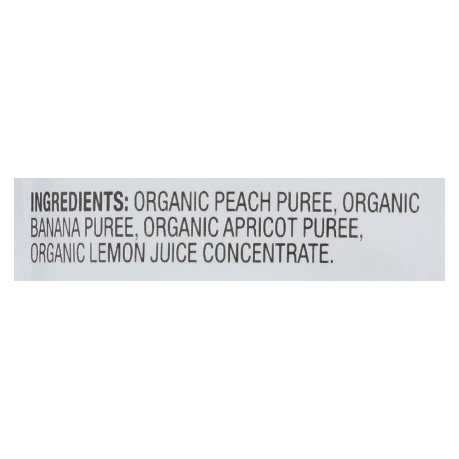 ingredients : organic peach puree;organic banana puree;organic apricot puree;organic lemon juice concentrate