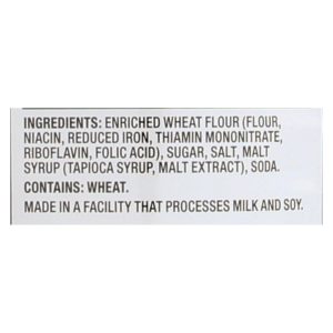 ingredients : enriched wheat flour;flour;niacin;reduced iron;thiamin mononitrate;riboflavin;folic acid;sugar;salt;malt syrup;tapioca syrup;malt extract;soda