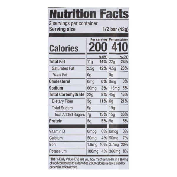 Probar meal bar, oatmeal chocolate chip is a great choice for healthy, on-the-go snacking. Made with all natural ingredients, probar meal bars are free from unnecessary and unnatural ingredients, giving you a healthy boost of energy, along with a great flavor and 9 g of protein per serving. This product is gluten free, non-gmo and organic. Each probar meal bar, oatmeal chocolate chip weighs 3 oz. With 390 calories per bar. See nutrition facts panel for allergens.