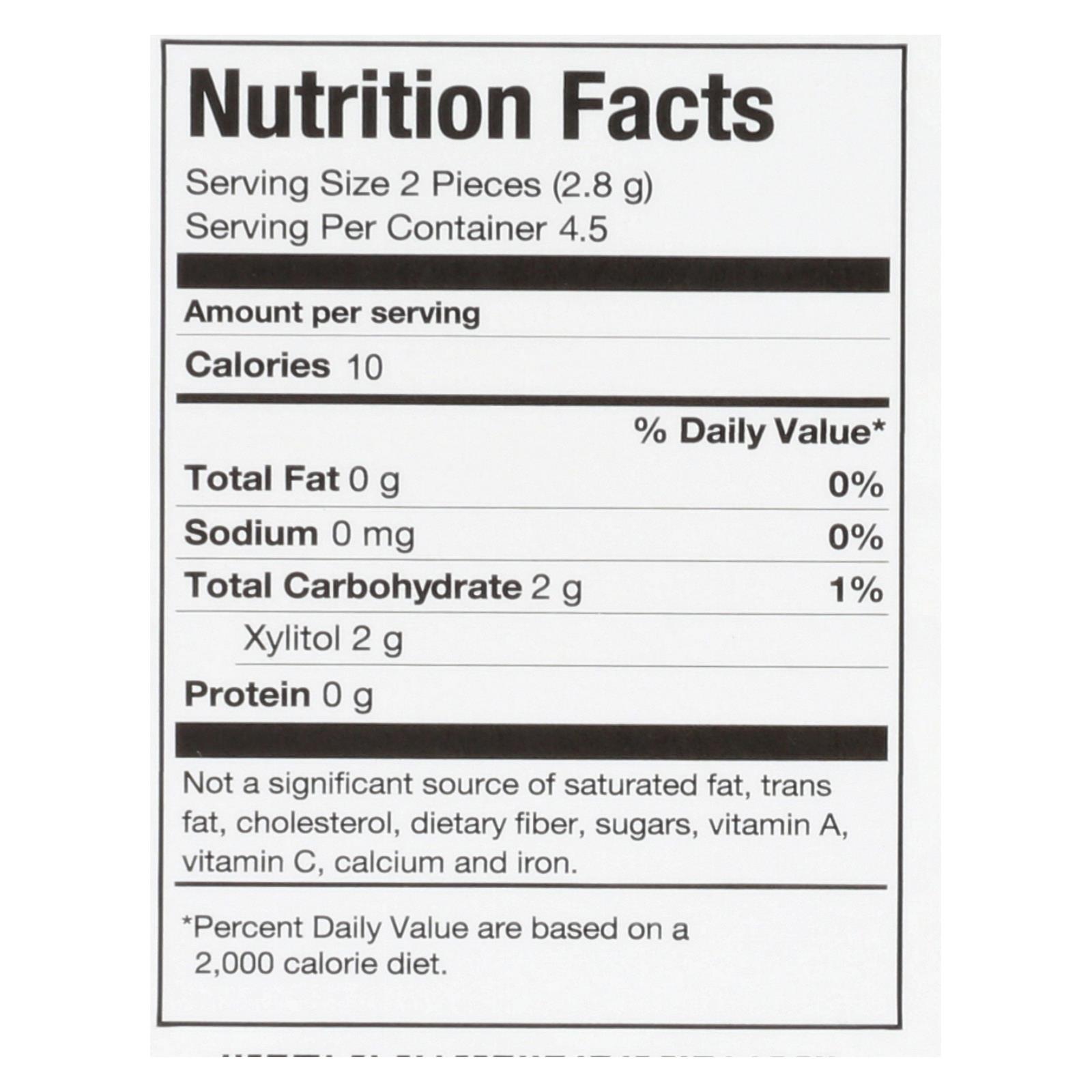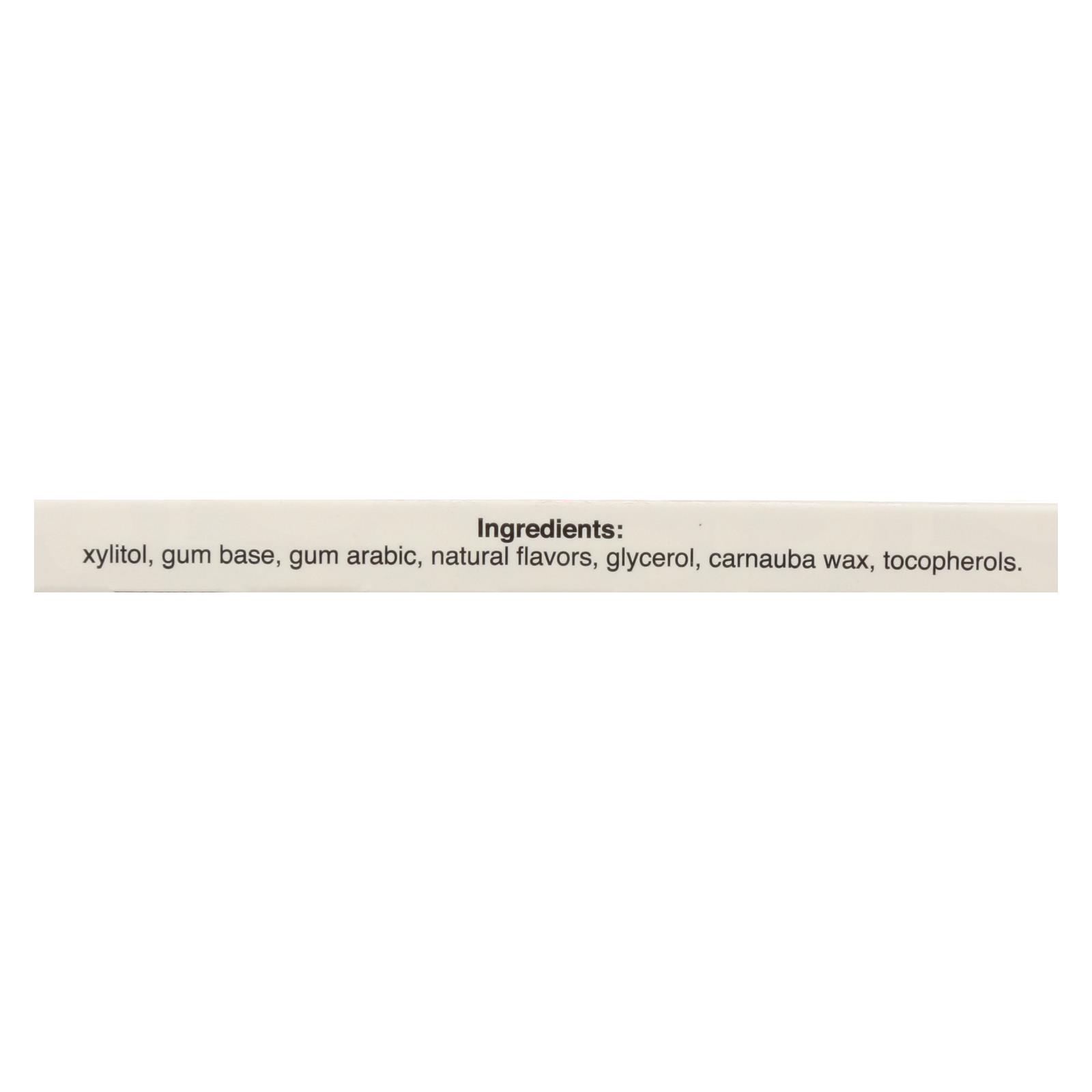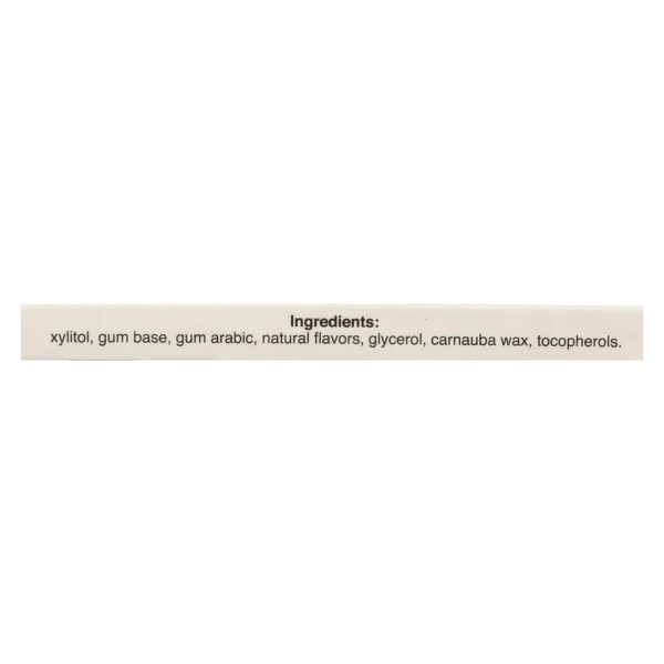 ingredients : xylitol;gum base;gum arabic;natural flavors;glycerol;carnauba wax;tocopherols