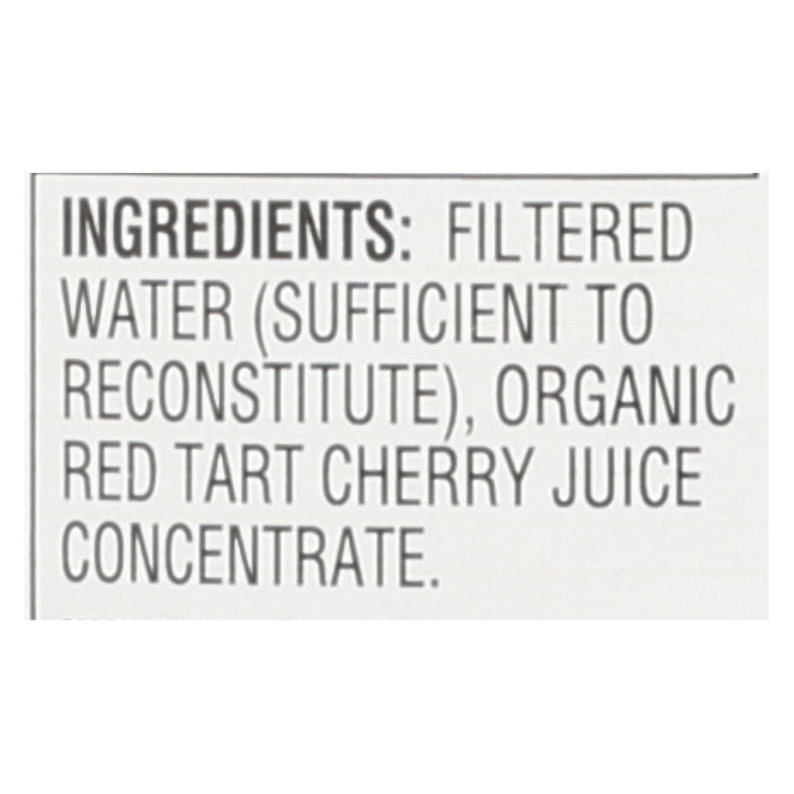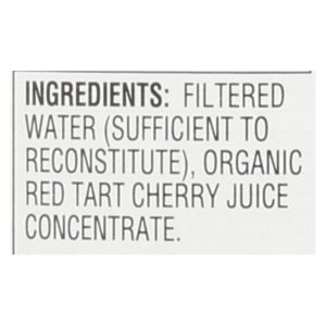 ingredients : filtered water (sufficient to reconstitute);organic red tart cherry juice concentrate
