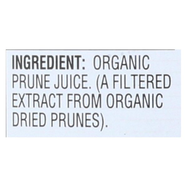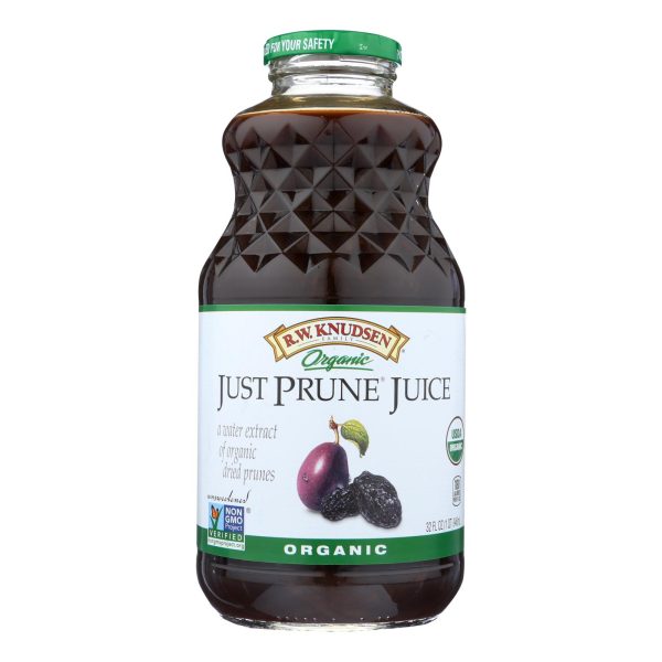 Rw knudsen’s organic prune juice is made from 100% prune concentrate. It’s all-natural, so there are no preservatives or artificial colors. Every 32 fl. Oz. Bottle is unsweetened, non-gmo certified and pastuerized for your safety. Each cup of juice is equivalent to one serving of fruit. See nutrition facts panel for allergens.