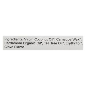 ingredients : virgin coconut oil;carnauba wax;cardamom organic oil;tea tree oil;erythritol;clove flavor