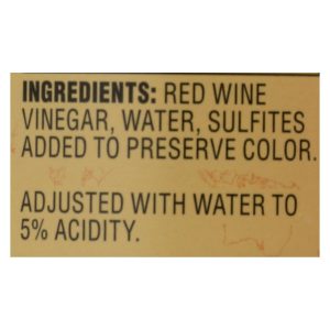 ingredients : red wine vinegar;water;sulfites added to preserve color;adjusted with water to 5% acidity