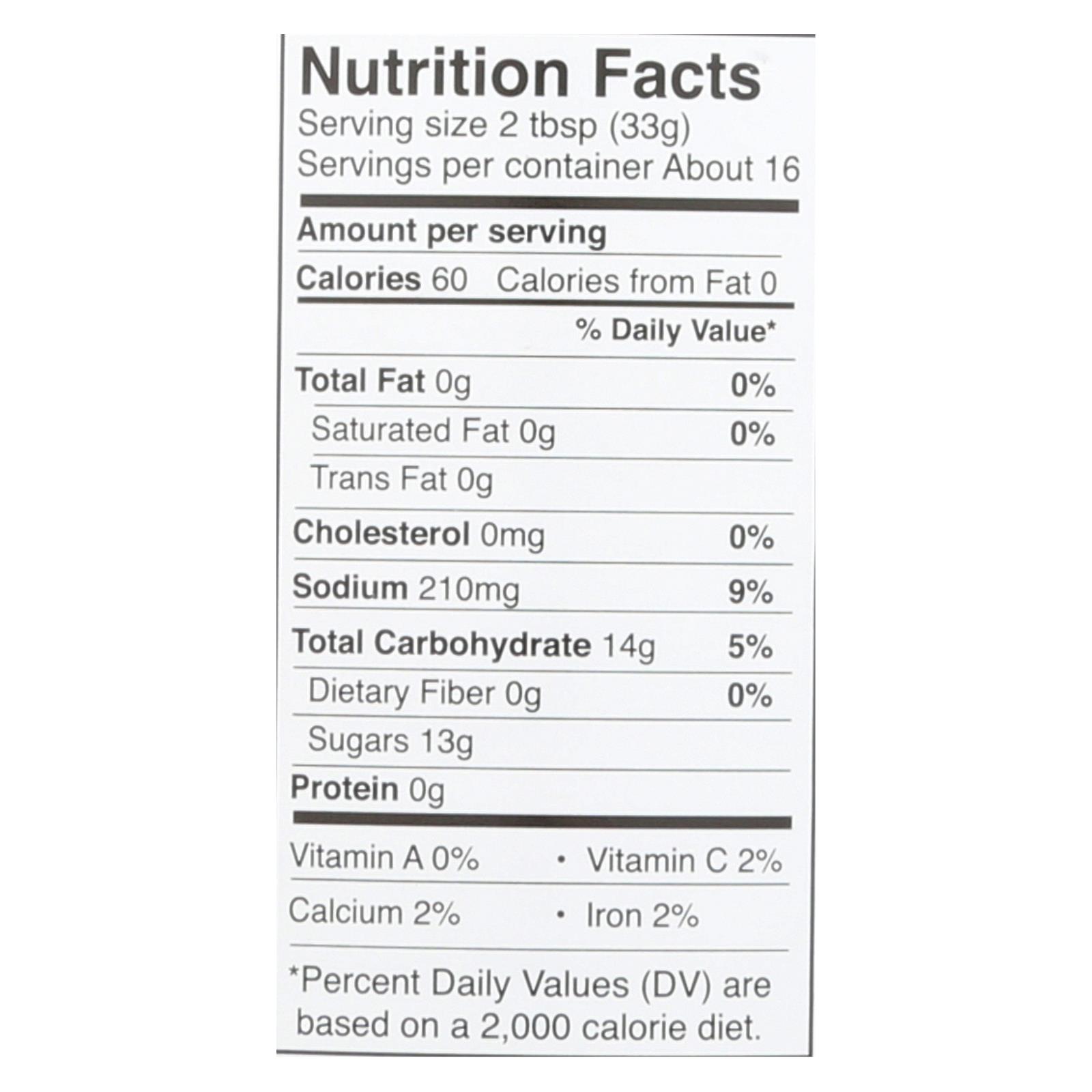 Rib rack southern bourbon bbq sauce is made with tomatoes, garlic and a splash of bourbon. We don’t use artificial preservatives or high fructose corn syrup. This sauce is expertly crafted using only natural ingredients. Each serving is just 60 calories. This bottle contains 19 oz. Of barbecue sauce.
