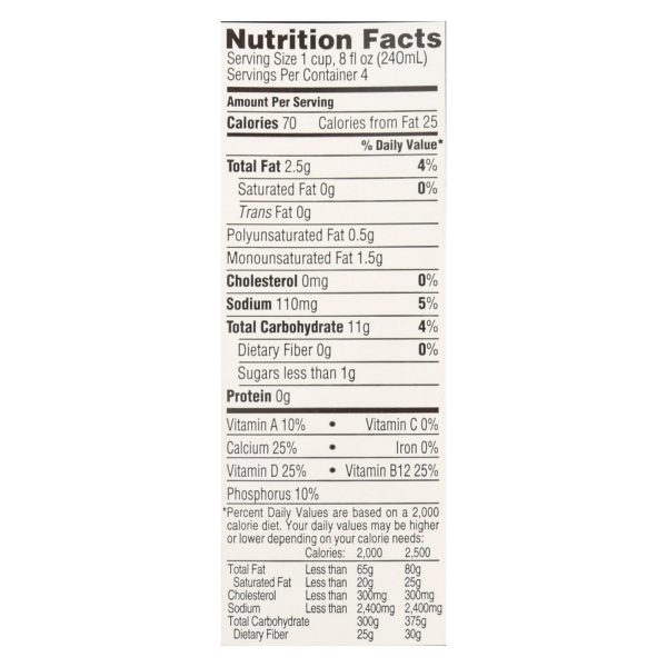 Dream brands’ rice dream beverage contains 25% of the daily recommended values each of calcium, vitamin b12 and vitamin d in just one serving. It also contains 10% of the daily recommended values each of phosphorus and vitamin a. Organic rice dream contains only naturally derived sugar (less than 1 gram per serving) with no added sweeteners. Every 32 oz. Box of organic rice dream is free of saturated and trans fats, cholesterol, gluten, gmos and soy. It’s also dairy-free and easy to digest. This beverage is not for use as an infant formula. For children under age 5, consult your child’s doctor.