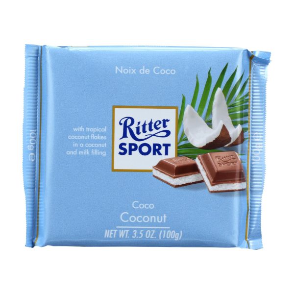 Ritter Sport Chocolate Bar – Milk Chocolate – Coconut – 3.5 Oz Bars – Case Of 12