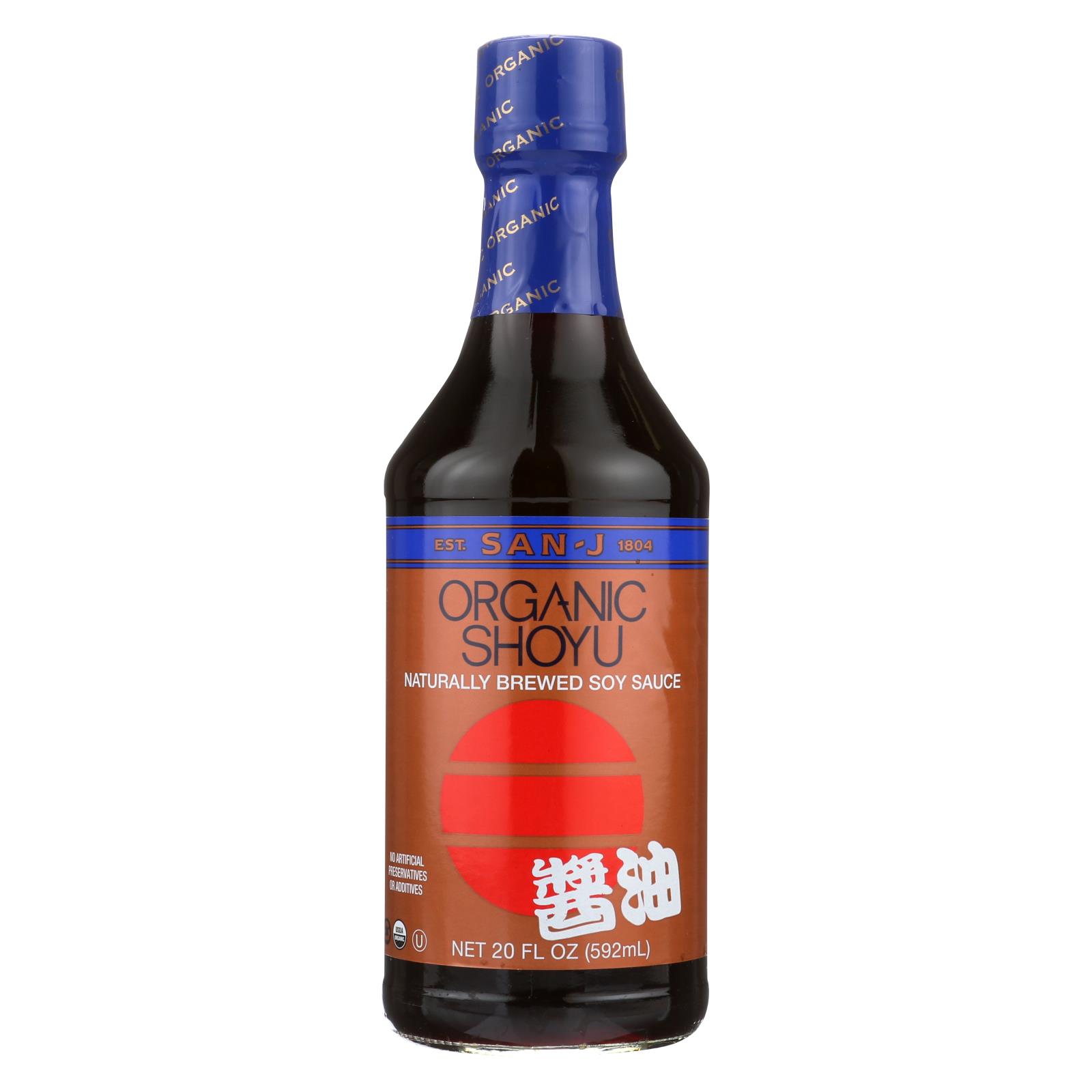 San-j shoyu soy sauce is a usda organic certified food product. This non-gmo project verified soy sauce comes in one 20 fl. Oz. Bottle and is completely vegan. It does not contain artificial additives or preservatives and is certified kosher-parve. It has just 10 calories per serving. See nutrition facts panel for allergens.