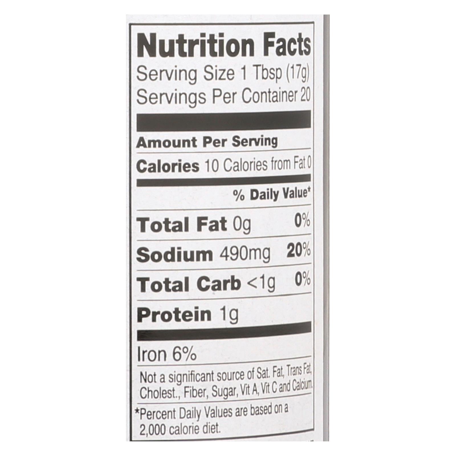 San-j tamari lite gluten-free soy sauce is a certified kosher-parve food product. This non-gmo project verified soy sauce comes in one 10 fl. Oz. Bottle and is completely vegan. It does not contain preservatives or artificial additives. It has 490 mg. Of sodium per serving. See nutrition facts panel for allergens.