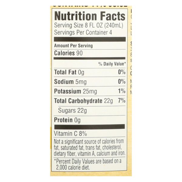 Santa cruz organic lemonade is a usda-certified organic beverage made from concentrate and has been pasteurized for your safety. This 32 fl. Oz. Glass bottle of lemonade is verified non-gmo and gluten free. Each bottle contains four 8 fl. Oz. Servings and each serving provides 8% of the recommended daily value of vitamin c.