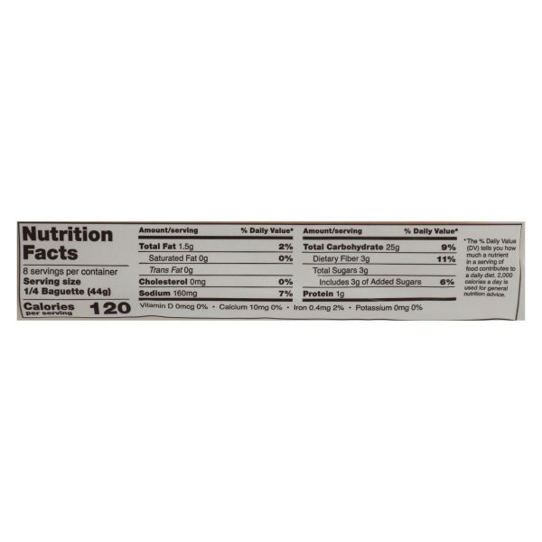 Schär artisan style baguettes are gluten-free. This 12.3 oz. Package contains 2 artisan style baguettes fortified with vitamins and minerals. Artisan style baguettes are free of preservatives and make for a good source of fiber. This product does not contain lactose. See nutrition facts panel for allergens.