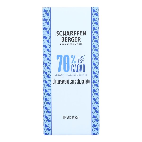 Scharffen berger 70% cacao bittersweet bar is a rainforest alliance-certified bittersweet dark chocolate bar created using the world’s best cacao beans blended in small batches on vintage european equipment. This 3 oz. Chocolate bar is kosher-parve, gluten-free and comes with bright fruitiness and a long, smooth finish.