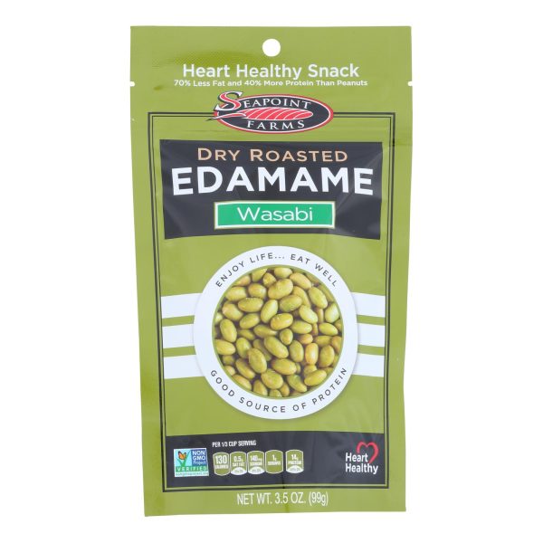 Seapoint farms spicy wasabi dry roasted edamame are made with soybeans, wasabi powder and sea salt to give you protein- and fiber-rich bites that are as delicious as they are heart-healthy. Each serving is just 130 calories and provides a whopping 26% of the daily recommended value of protein and 28% of the daily recommended value of fiber to keep you feeling full and energized for hours. This is a 3.5 oz. Packet of roasted edamame.