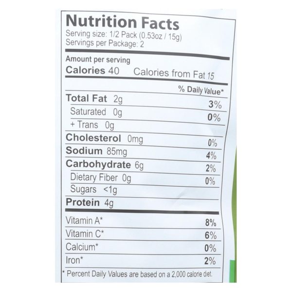 Seasnax chomperz jalapeno flavor crunchy seaweed chips have a slightly salty and spicy kick that sets them apart from plain old chips. Munch on our seaweed chips right out of the bag, or serve them alongside your favorite dips. Each 1 oz. Bag of jalapeno flavor crunchy seaweed chips is non-gmo project verified.