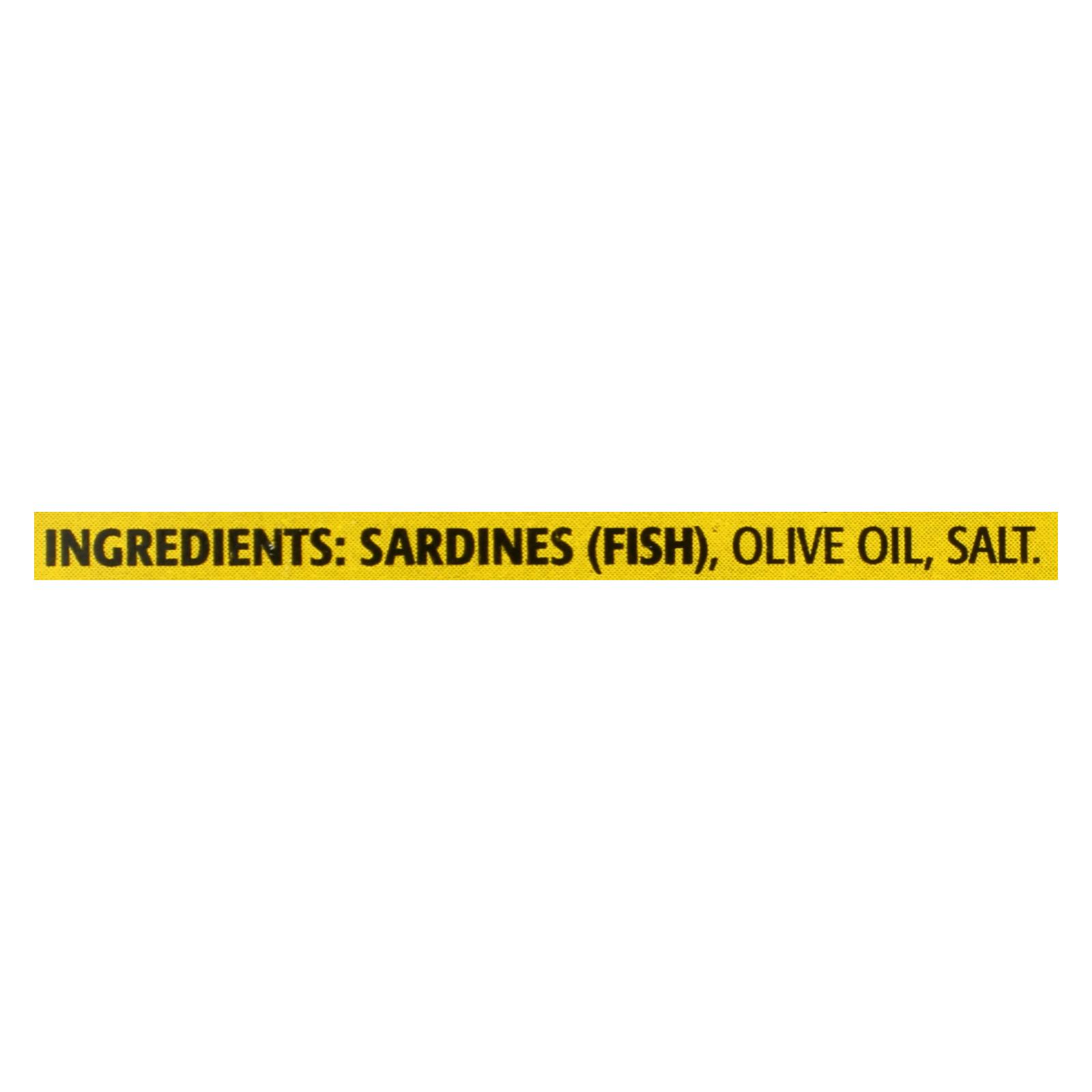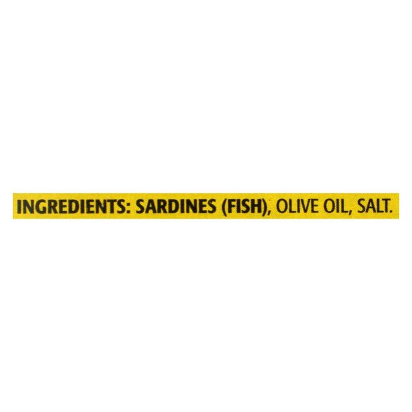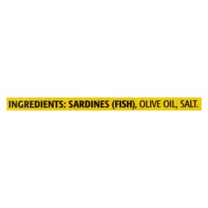 Season sardines in 100% olive oil combines sardines with olive oil and salt. This wild caught fish from morocco is non-gmo, certified gluten-free and kosher-parve. It’s also been certified for sustainable fishing practices. Sardines in 100% olive oil contains essential omega fatty acids. You’ll get two 1/4 cup, drained, servings in this 4.375 oz. Container.