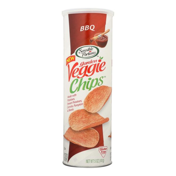 Sensible portions bbq garden veggie chips satisfies your need for a crunchy snack with a crisp chip that is made from healthy potatoes, sweet potatoes, carrots, pumpkins and beets. Each 5 oz. Container is filled with tangy, barbecue-flavored, stackable chips that are ideal for sharing or eating alone.