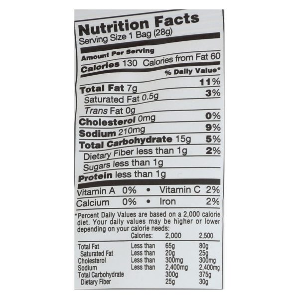 Sensible portions garden veggie sea salt straws offer a healthy vegetable and potato snack that has no trans fats or cholesterol. Stow this 1 oz. Single-serve bag into your lunchbox to munch with your midday sandwich, or keep it on hand for a guilt-free snack after you get home. Each bag contains just 130 calories, making these vegan vegetable and potato snacks a great choice if you’re watching your waistline.
