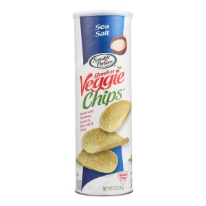 Sensible portions sea salt garden veggie chips in a canister are made with potatoes, spinach, broccoli and peas. Our recipe uses certified non-gmo ingredients and natural flavors. Garden veggie chips are a gluten-free snack and just 150 calories per serving. This 5 oz. Container holds 5 servings of garden veggie chips.