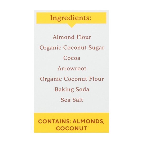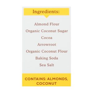ingredients : almond flour organic coconut sugar cocoa arrowroot organic coconut flour baking soda sea salt