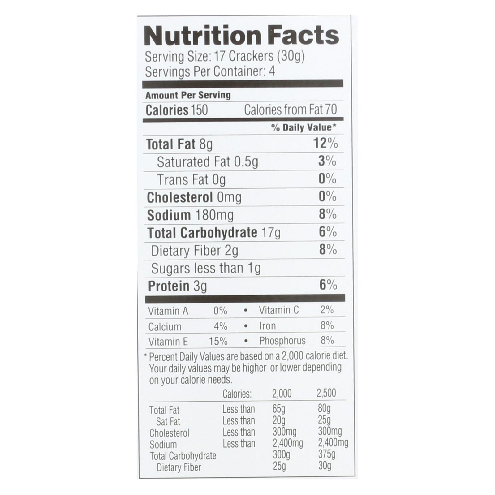 Simple mills sun-dried tomato & basil almond flour crackers are made with nut and seed flour blend, tapioca, cassava, organic sunflower oil, sun-dried tomatoes, organic onion, organic basil, organic garlic, sea salt, organic pepper and rosemary extract. Each 4.25 oz. Box contains 4 servings of about 17 crackers each. Each serving has 150 calories, 3 g. Of protein and 2 g. Of dietary fiber.