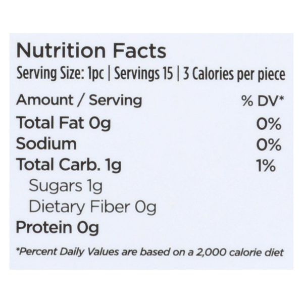 Simply gum natural ginger contains 15 pieces of non-gmo project verified ginger-flavored gum per box. Each piece is made with organic raw cane sugar, natural chicle base, natural flavor, organic vegetable glycerin and organic rice flour. A one-piece serving contains 1 g. Of carbohydrates, 1 g. Of sugar, and 3 calories.
