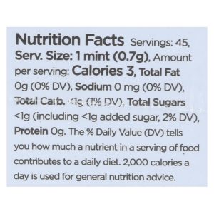 Simply gum ginger mints are kosher-parve for people who follow this diet. With just four ingredients, each 1.1 oz. Tin has a simple recipe. There are 45 mints per tin so you can enjoy the refreshing ginger taste for some time. One mint is just 3 calories and has 0 g. Of total fat and 0 mg. Of sodium.