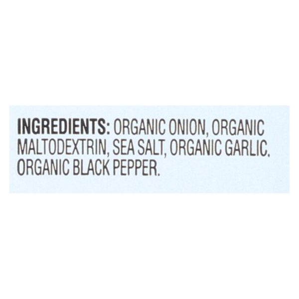 ingredients : organic onion;organic maltodextrin;sea salt;organic garlic. Organic black pepper