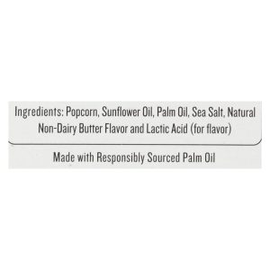 ingredients : popcorn;sunflower oil;palm oil;sea salt;natural non-dairy butter flavor and lactic acid;for flavor