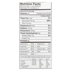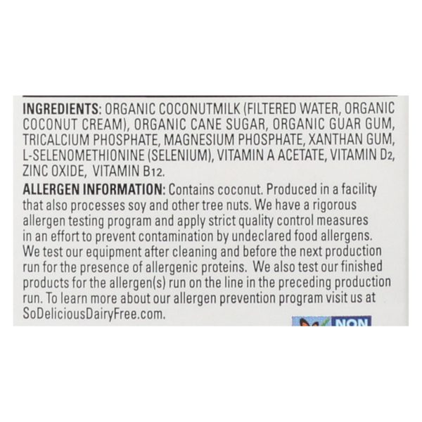 So delicious original coconut milk is a 100% usda-certified organic beverage. This certified gluten-free coconut milk comes in one 1 qt. Carton and contains 0 g. Of trans fat or cholesterol. It is certified kosher-parve and certified vegan, and each serving contains just 70 calories. See nutrition facts panel for allergens.