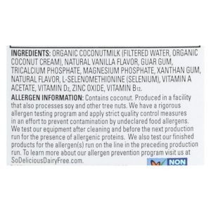 50 calories per serving. See nutrition information for saturated fat content. Usda organic. Certified vegan vegan.org. Certified gf gluten-free. Certified organic by organic certifiers www.organiccertifiers.com. Non gmo project verified nongmoproject.org. I’m real. Did you know? we use special packaging to seal in the flavor and nutrition of this creamy coconutmilk. So it’s the coconut deliciousness you love, without refrigeration. And because it can be stored in the pantry, you’ll always have enough for o matcha smoothie, an indulgent hot chocolate or butternut squash soup. Sodeliciousdairyfree.com. How2recycle.info. To learn more, visit us at sodeliciousdairyfree.com or call 1-866-388-7853. Is your mouth watering yet? find this and other full recipes at sodeliciousdairyfree.com. Is your mouth watering yet? find the and other full recipes ad sodeliciousdairyfree.com. Certified b corporation. At so delicious, we believe in nourishing people and the planet. That’s why we joined the b corp movement. We’re proud to use our brand as a force for good by paying fair wages to our employees, committing to reduce our environmental impacts and more. Follow our journey at sodeliciousdairyfree.com/transparency. Tetra pak tetra brik aseptic. Fsc. Mix board. Fsc. Delight in the silky goodness of coconut with so delicious dairy free unsweetened vanilla coconutmilk. Filled with creamy flavor and containing 0mg cholesterol per serving, our delectable coconutmilk offers a delicious alternative to dairy. With each cool, refreshing glass, you can taste a smooth wave of vanilla notes gliding over the rich flavor of coconut. Not only that, but our sumptuous coconutmilk makes a great addition to your favorite recipes; just substitute it for dairy milk in an easy one-for-one ratio. And for your convenience, our coconutmilk is available in aseptic packaging that keeps it shelf stable unopened. Has a dairy-free lifestyle ever been so easy or tasty? for over thirty years, so delicious dairy free has been delighting taste buds around the world with a jaw-dropping variety of delectable, dairy-free products. From our frozen treats to our coffee creamers, we deliver each delicious bite and sip with the promise of unwavering quality. Our products are free of hydrogenated oils with no colors from artificial sources. Our entire line of foods and beverages is certified vegan and non-gmo project verified certified or enrolled. We’re proud of our commitment to both our values and our customers–whether in our robust allergen testing program, the sustainability of our practices, or the ingredients we choose.; for over thirty years, so delicious dairy free has been delighting taste buds around the world with a jaw-dropping variety of delectable, dairy-free products. From our frozen treats to our coffee creamers, we deliver each delicious bite and sip with the promise of dairy-free quality. Our products are free of hydrogenated oils with no colors from artificial sources. Our entire line of foods and beverages is certified vegan and non-gmo project verified certified or enrolled. We’re proud of our commitment to both our values and our customers–whether in our robust allergen testing program, the sustainability of our practices, or the ingredients we choose.