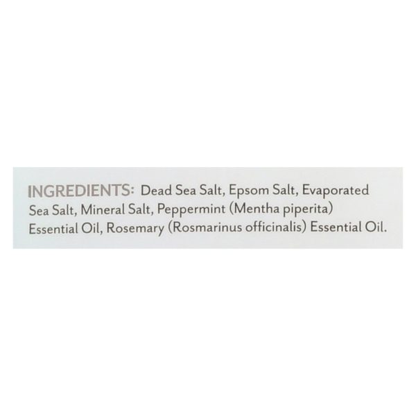 ingredients : dead sea salt;epsom salt;evaporated sea salt;mineral salt;peppermint;mentha piperita;essential oil;rosemary;rosmarinus officinalis