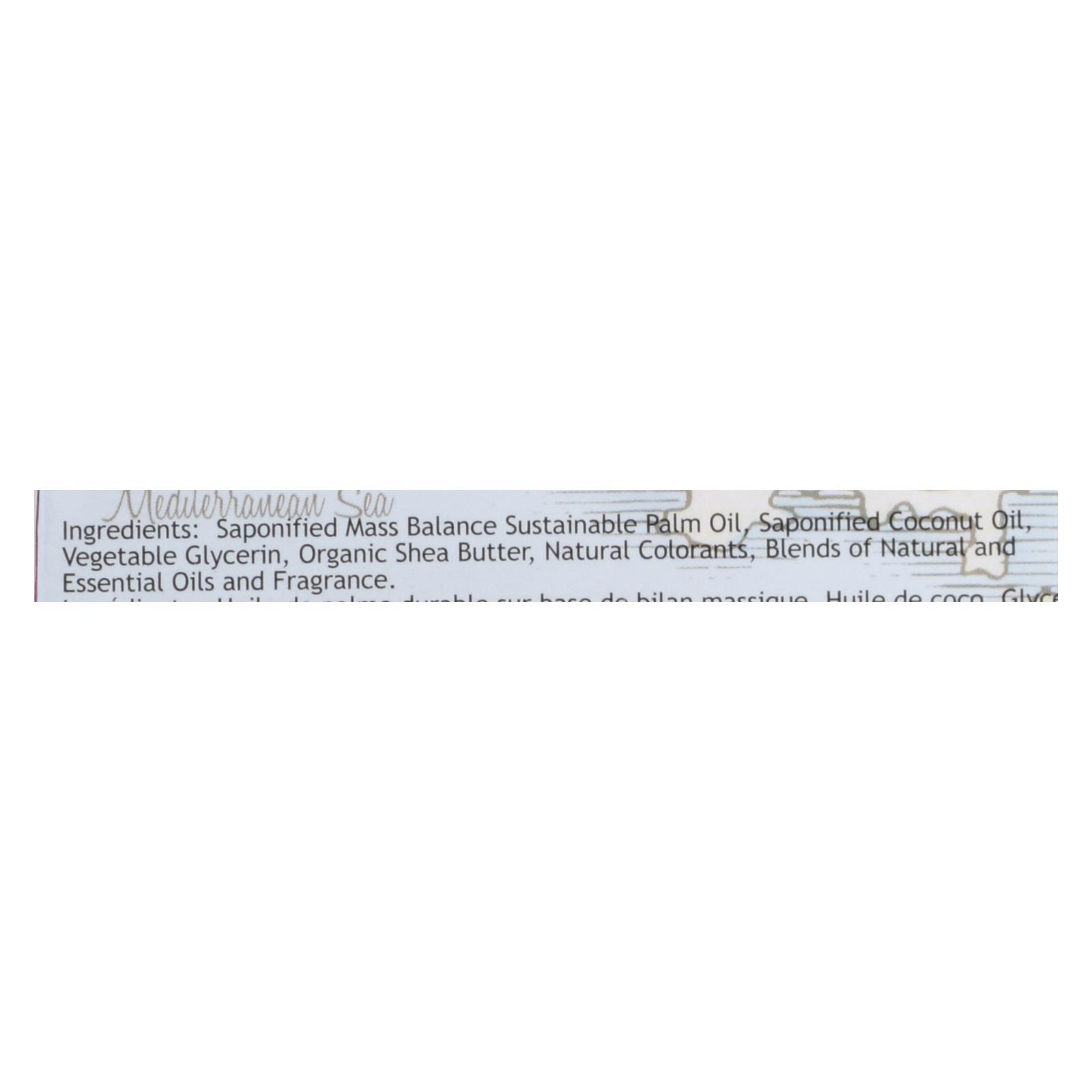 ingredients : saponified mass balance sustainable palm oil;saponified coconut oil;vegetable glycerin;organic shea butter;natural colorants;blends of natural and essential oils and fragrance