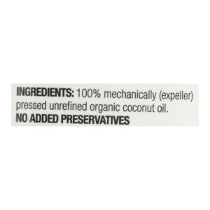 ingredients : 100% mechanically;expeller;pressed unrefined organic coconut oil