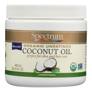 Spectrum essentials unrefined coconut oil is the perfect choice for natural body care. Certified usda organic and non- gmo, our coconut oil restores skin and hair integrity. With a rich tropical aroma, this certified kosher coconut oil with no added preservatives provides a protective layer to combat the damaging effects of sun, wind and cold weather. Includes one 15 oz. Jar of spectrum essentials unrefined coconut oil.