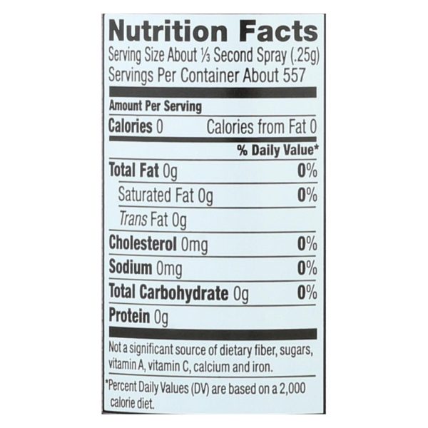 ingredients : first cold pressed extra virgin olive oil;soy lecithin;propellant