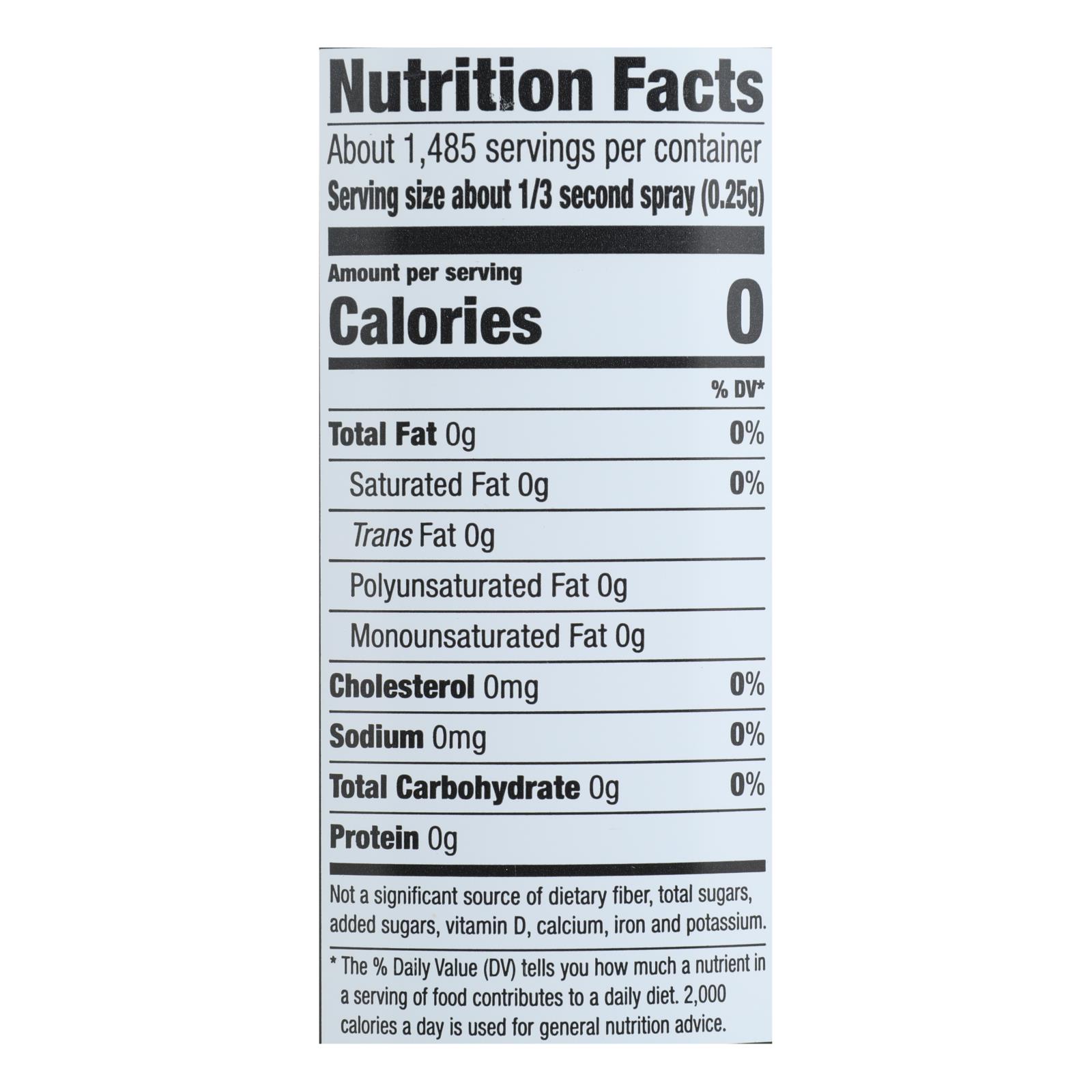 ingredients : expeller pressed refined canola oil;soy lecithin;propellant
