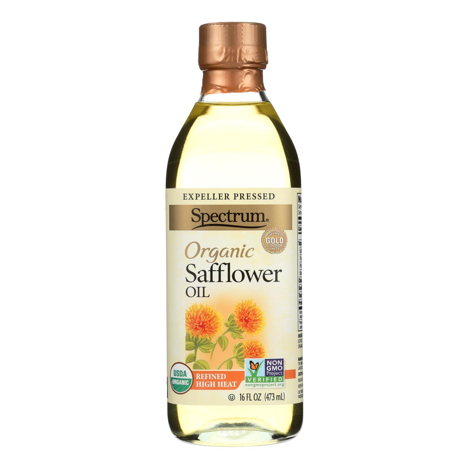 Spectrum naturals expeller pressed safflower oil is perfect for your high heat cooking and frying needs. Certified kosher, non-gmo, our refined high heat oil is expeller pressed from specially cultivated seeds. This refined high oleic safflower oil has a neutral flavor and a high “smoke point” that makes the taste of any dish superb. Includes one 16 oz. Bottle of cholesterol and trans-fat free spectrum naturals expeller pressed safflower oil.