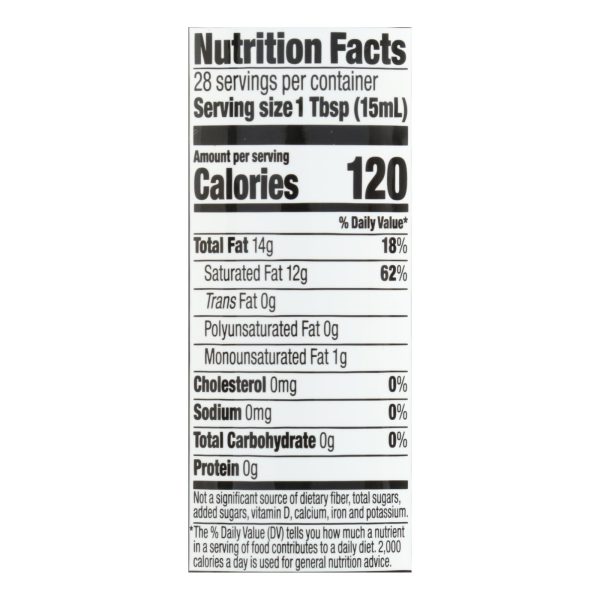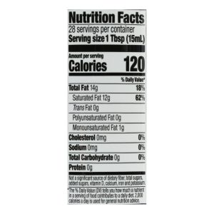 Spectrum naturals coconut oil is a non-hydrogenated fat food that is 100% usda-certified organic. This product comes in one 14 fl. Oz. Jar. Coconut oil is a superb medium-high-heat cooking oil that can withstand temperatures up to 365ºf and is best for sauteing, frying and for flavorful baking. Plant-based saturated fats can be a very good thing. Whether for tender, moist cake or a southeast asian stir-fry, spectrum organic coconut oil is the right choice. See nutrition facts panel for allergens.