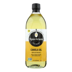 Spectrum naturals expeller pressed canola oil is perfect for high heat cooking as well as baking. Certified kosher, non-gmo, this canola oil is a non-hydrogenated fat food with a neutral flavor and a high “smoke point” that lends itself to all-purpose cooking and baking. Includes one 32 oz. Bottle of cholesterol and trans-fat free spectrum naturals expeller pressed canola oil.