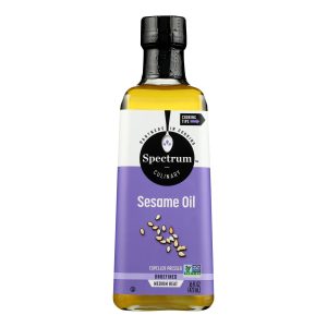 For medium heat. Expeller pressed. Spectrum unrefined sesame oil is made from 100% premium sesame seeds that have been gently expeller pressed and bottled before any of the complex aromas and wonder-fully nutty flavor can escape. Let it flow to add harmony, depth and a hint of asia to virtually any dish. This oil is best in sauces and salad dressings, or for sauteing at medium heat where the oil’s full flavor is intended as an integral part of the finished dish. Medium heat: up to 350 degrees f. Www.spectrumorganics.com. No hydrogenated fat. Oil product of mexico or usa. Packaged in the usa.