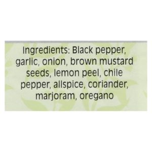 ingredients : black pepper;garlic;onion;brown mustard seeds;lemon peel;chile pepper;allspice;coriander;marjoram;oregano