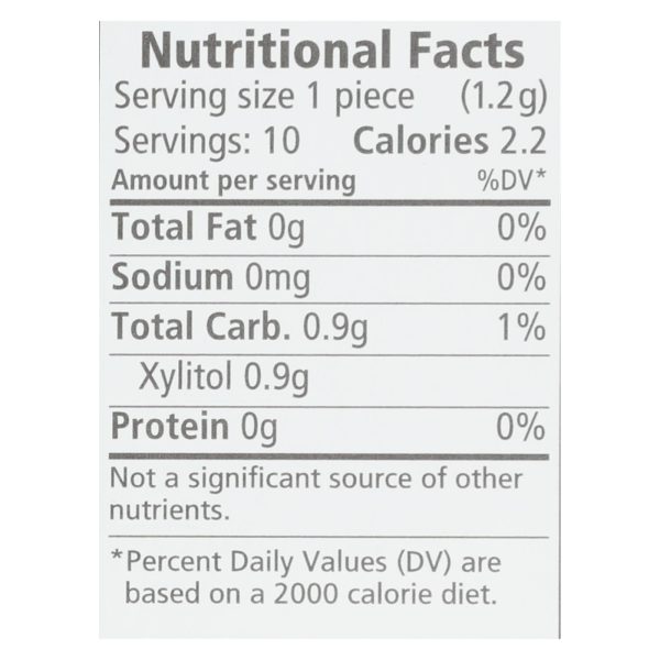 ingredients : xylitol;gum base;natural flavors;calcium carbonate;gum arabic;vegetable glycerin;sunflower lecithin;carnauba wax