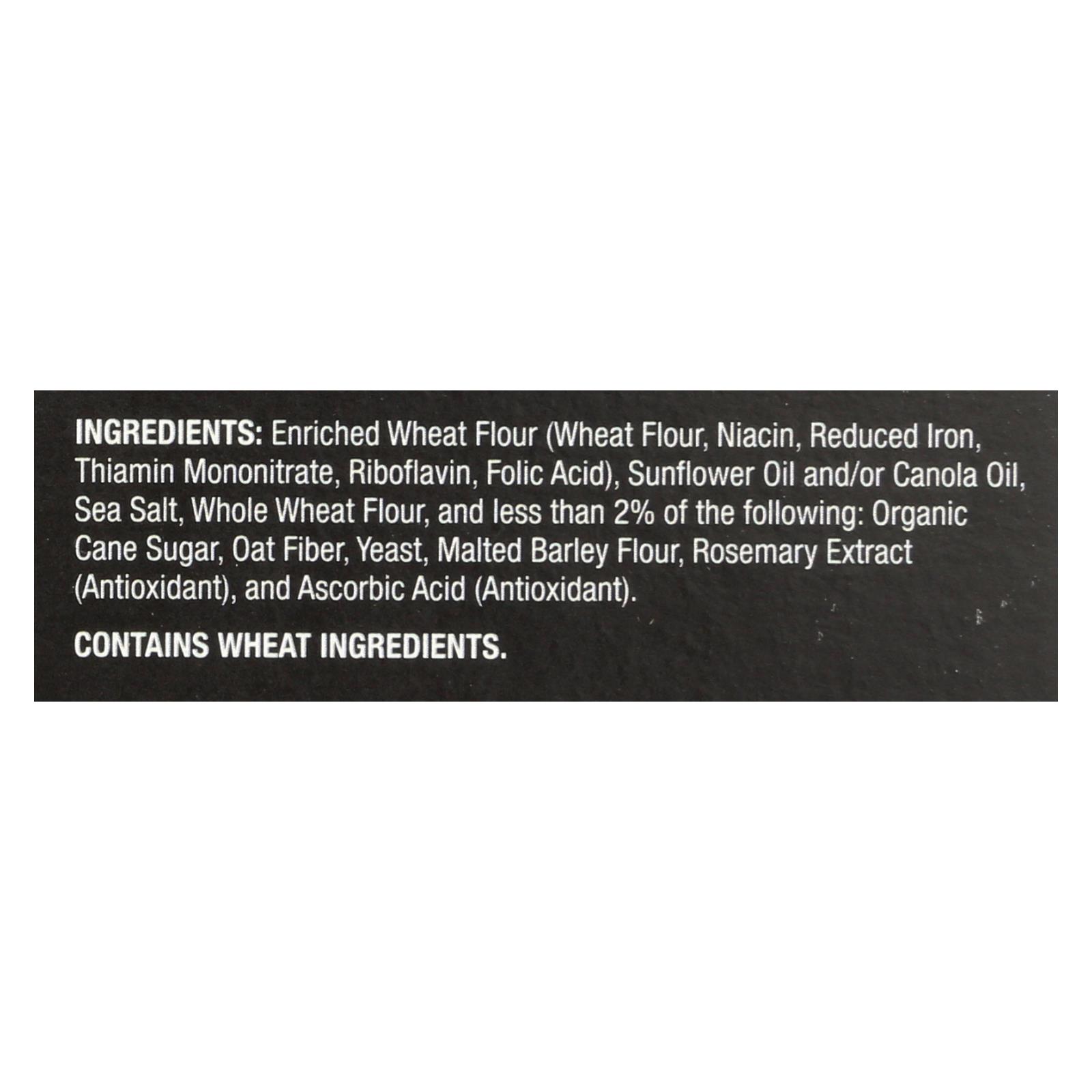 ingredients : enriched wheat flour;wheat flour;niacin;reduced iron;thiamin mononitrate;riboflavin;folic acid;sunflower oil and/or canola oil;sea salt;whole wheat flour;and less than 2% of the following: organic cane sugar;oat fiber;yeast;malted barley flour;rosemary extract;antioxidant;and ascorbic acid